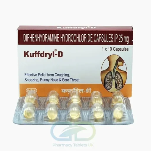 Additionally, Kuffdryl-D Softgel Capsule is utilized to induce sleep, treat Parkinson’s disease, and relieve coughs caused by minor throat or airway irritation. It contains a Nytol ingredient, which is known for its sleep-inducing properties.